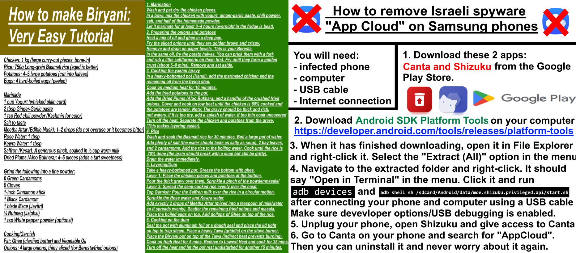 Biryani Tech publishes weekly news, reviews and articles, mainly about tech but sometimes cricket and humanities. There are also plenty of recipes and over 150 software downloads. There should be some tech guides and support articles soon but in the meantime, here's a banger biryani recipe and a Samsung spyware removal tutorial. Check out the Extras section for some quizzes, games and a riddle to unlock a secret page!